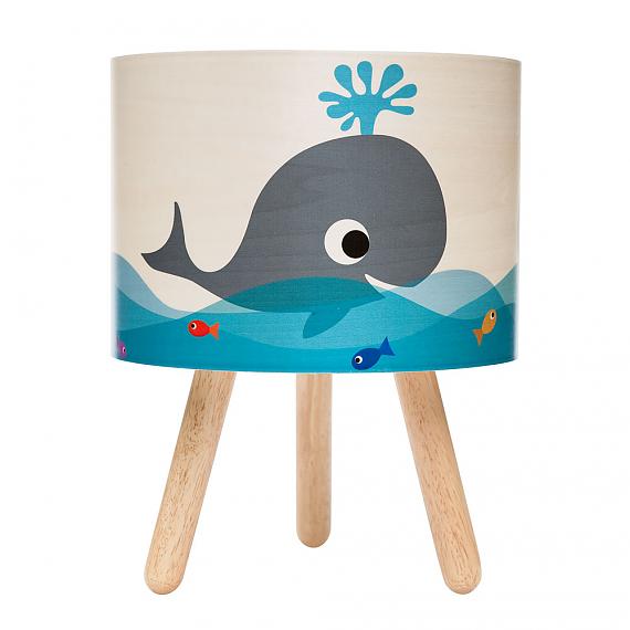 BRAND NEW! The adorable Whale Lamp has arrived! Your child will be delighted by this beautifully made timber lamp with cheerful whales swimming in the clear blue waves of the ocean. This is a new style of lampshade for Sydney designers, Micky & Stevie. The playful image has been printed onto a pale-coloured timber veneer shade. The vibrant colours are a little translucent, creating a wonderful effect - especially with the overlapping blue waves, and you can also see the subtle texture of the woodgrain through the paint.